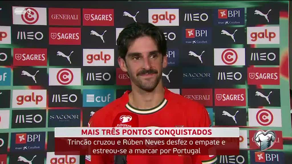 Portugal venceu hoje a seleção irlandesa a caminho do Mundial 2026. Um jogo sofrido em que os irlandeses fecharam o caminho aos jogadores lusos. Mas ao minuto 91, Rúben Neves encontrou cabeça para o golo da vitória, como explicou Francisco Trincão e Rúben Dias.