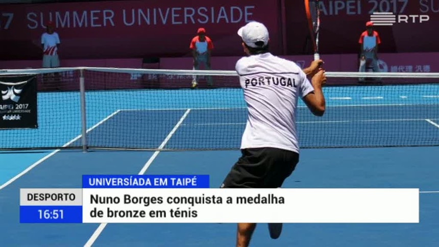 Nuno Borges conquistou a medalha de bronze em ténis nas Universíadas de Taipé. O português perdeu nas meias-finais com Jason Jung, por um duplo 6-3. Esta foi a quinta medalha para Portugal, que igualou a melhor participação de sempre em Universíadas.