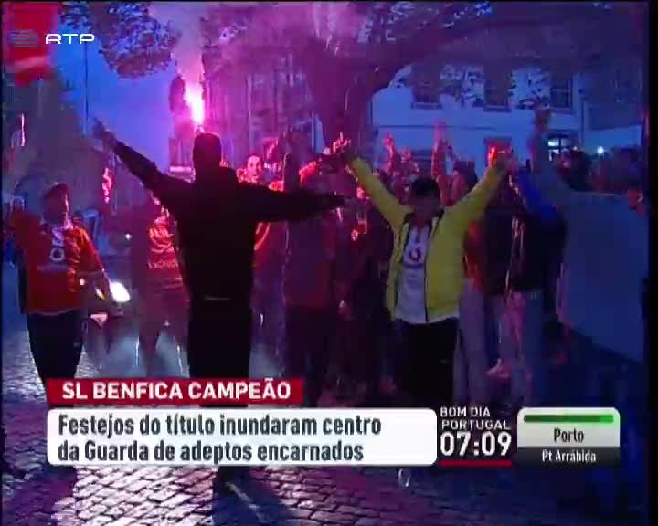 Mal acabou o jogo da conquista do 33.º título de campeão nacional, os benfiquistas da Guarda saíram de casa. A alegria dos adeptos ficou espelhada em vários momentos de festa nas ruas.