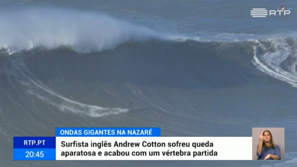 Ondas gigantes na Nazaré deixam surfista inglês ferido