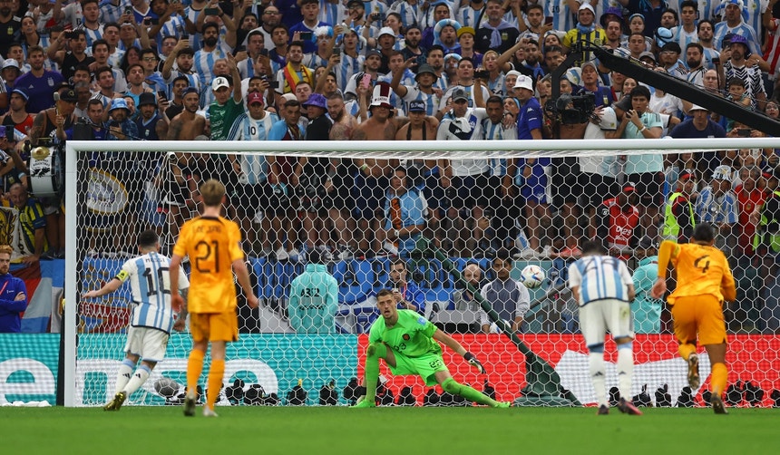 A Argentina eliminou os Países Baixos nas grandes penalidades e carimbou a passagem às meias-finais onde vai defrontar a Croácia que hoje bateu também nas penalidades o Brasil. A Argentina qualificou-se ao vencer os Países Baixos por 4-3, no desempate por grandes penalidades. No segundo jogo dos ‘quartos’, os sul-americanos estiveram a vencer por dois golos, marcados por Nahuel Molina, aos 35 minutos, e Lionel Messi, aos 73, de penálti, mas o suplente Wout Weghorst, com tentos aos 83 e 90+11, forçou os penáltis, nos quais Emiliano Martínez parou dois pontapés dos holandeses. Nas meias-finais, a Argentina vai defrontar, na terça-feira, em Lusail, pelas 19:00 (em Lisboa), a Croácia, vice-campeã mundial em título, que eliminou o pentacampeão Brasil, ao vencer por 4-2 também nos penáltis, após 1-1 nos 120 minutos.