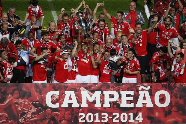 Os jogadores do Benfica não esconderam a alegria pela conquista do título.