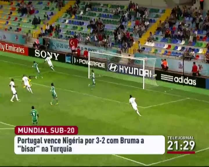 A seleção portuguesa estreou-se com uma vitória no Mundial de sub-20 de futebol, ao vencer a Nigéria por 3-2, em jogo da primeira do grupo B da prova, disputado em Kayseri, na Turquia. A equipa lusa chegou ao intervalo a vencer por 2-0, depois dos tentos de Bruma (30 minutos) e de Aladje (34), mas ainda permitiu que os nigerianos chegassem ao empate, através de dois tentos de Ajagunj (57 e 67), antes de Bruma bisar no encontro (69), assegurando os três pontos para a equipa portuguesa. Com esta vitória, Portugal lidera o grupo com três pontos, os mesmos que a Coreia do Sul, que venceu no outro encontro do grupo Cuba por 2-1.