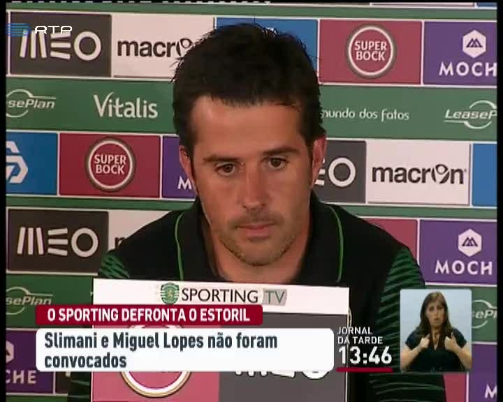 O Sporting joga no domingo com o Estoril sem Nani, Slimani e Miguel Lopes, que não foram convocados. Marco Silva diz que não sente pressão com as declarações de Bruno de Carvalho.