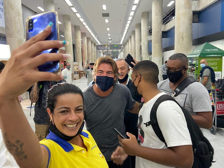 O português chegou ao Rio acompanhado de empresário, auxiliar, analista e preparador físico. Do Santos Dummont seguiu para um hotel na Barra, Zona Oeste do Rio, e depois jantou com o presidente Alexandre Campello e o executivo André Mazzuco.