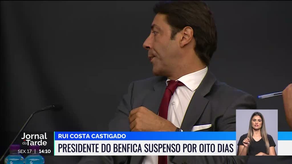 O Presidente do Benfica foi suspenso oito dias por ter confrontado o árbitro do fim do jogo com o Braga. Rui Costa questionou decisões de Tiago Martins no encontrou que ditou o afastamento da Taça de Portugal.