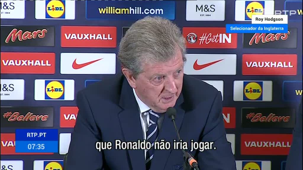 A seleção nacional perdeu com Inglaterra por 1-0 no segundo jogo de preparação para o Euro 2016. O selecionador de Inglaterra diz que a expulsão de Bruno Alves e a ausência de Ronaldo foram determinantes.