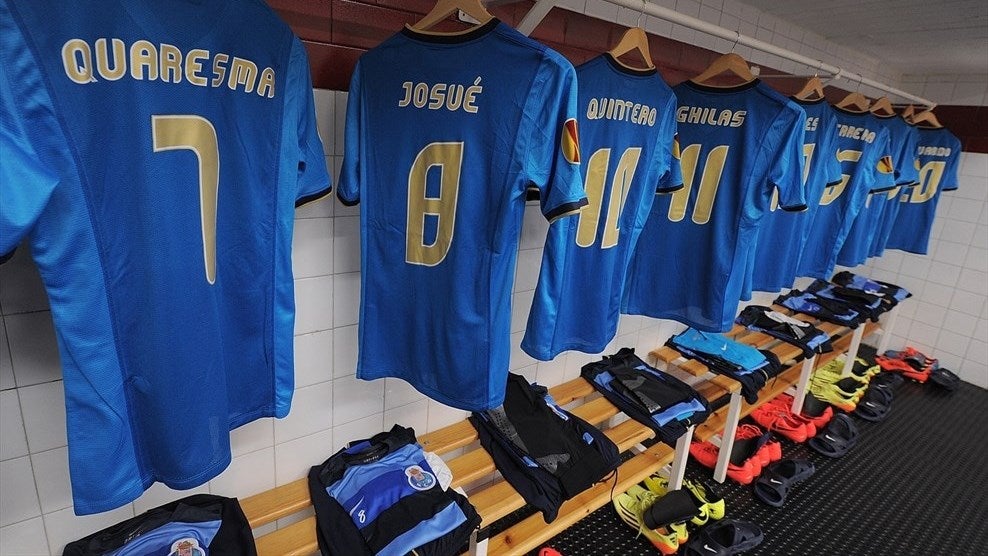 O Sevilha esquipa de branco e o Porto de Azul petróleo, cor do equipamento alternativo e calção preto