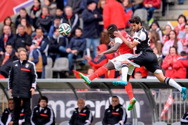 50' - Cabeceamento de Fejsa após cruzamento da direita, a bola sai por cima da baliza minhota, sem perigo para Eduardo.