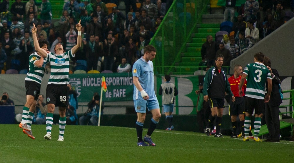 O Sporting venceu hoje o Manchester City, em jogo da primeira mão dos oitavos-de-final da liga Europa, por 1-0 com um golo de calcanhar de Xandão na sequência de um livre de Matías.