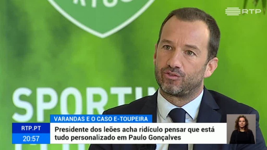 Frederico Varandas diz que é ridículo dissociar Paulo Gonçalves do Benfica no processo E-Topeira. Em entrevista exclusiva a RTP, o presidente do Sporting afirma que os leões vão sempre defender as regras no futebol. A entrevista pode ser vista na integra esta sexta-feira às 22h00 na RTP3.