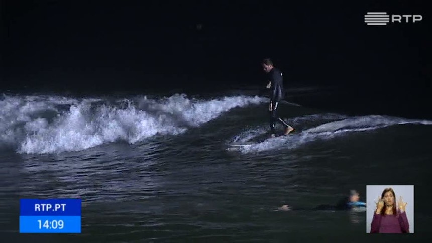Desporto Surf noite fora Houve surf noturno, na praia do Cabedelo na Figueira da Foz. Para ser possível esse momento invulgar, foi preciso instalar torres de iluminação. RTP / VER MAIS PUB