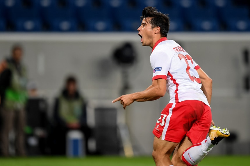 Um Sporting de Braga confiante e decidido foi a casa do Hoffenheim vencer surpreendentemente por 2-1. Mesmo assim, os alemães - um dos atuais líderes da Bundesliga - marcaram primeiro por Sandro Wagner e tiveram diversas oportunidades de dilatar a vantagem no marcador. O Braga não se intimidou, e foi lá à frente mostrar muita eficácia ao mesmo tempo que manteve a disciplina na defesa. Primeiro, perto do intervalo, empatou por João Carlos Teixeira, aos 45+1, depois com um golo de Dyego Sousa no arranque da segunda metade, aos 50. A vitória é muito importante para as contas do grupo da Liga Europa perante uma das mais perigosas equipas adversárias. Esta vitória deixa o Sporting de Braga isolado no comando do grupo com três pontos, tendo ainda beneficiado do empate (0-0) entre os turcos do Basaksehir e os búlgaros do Ludogorets, na Turquia. (Foto: EPA)