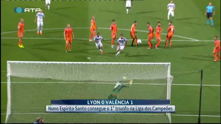 A noite de Liga dos Campeões teve vitórias portuguesas. O Valência de Nuno Espírito Santo foi a Lyon vencer por 1-0.