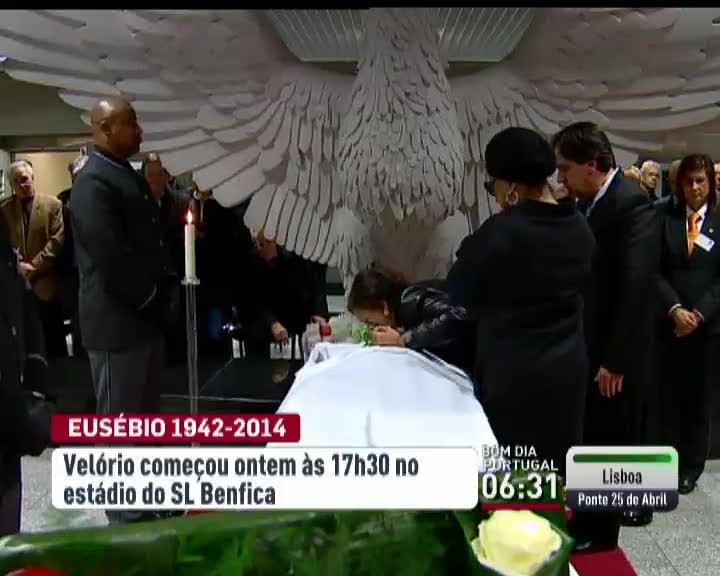 A urna com o corpo de Eusébio foi levada para o Estádio da Luz por volta das 5 e meia da tarde. A mulher e a filha do antigo jogador estiveram presentes na abertura da urna, no salão nobre do estádio. Milhares de pessoas esperaram horas para prestarem homenagem à lenda do futebol português.