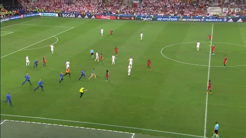 VÍDEO: Homem invade campo e interrompe jogo entre Polónia e Portugal