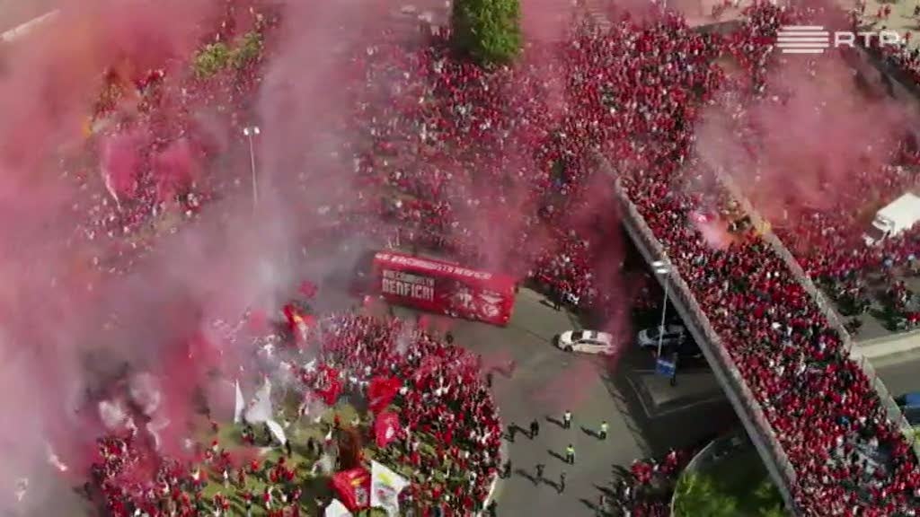 Vídeo - Milhares de pessoas na chegada do autocarro do Benfica ao estádio