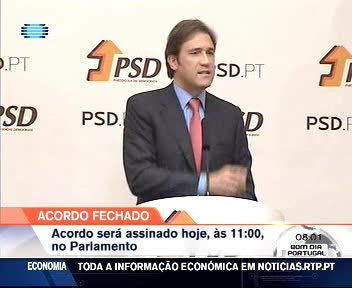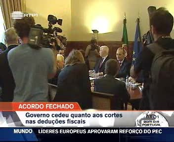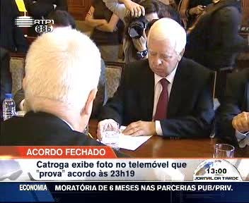 Atingia-se finalmente o acordo em que ao que a RTP sabe implicou cedências de ambas as partes, que foi rubricado pelos dois negociadores, Eduardo Catroga e Teixeira dos Santos.