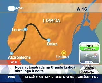 Abre hoje a nova auto-estrada A16 da área metropolitana de Lisboa. A A16 vai ligar os concelhos de Cascais, Lisboa, Amadora e Sintra.