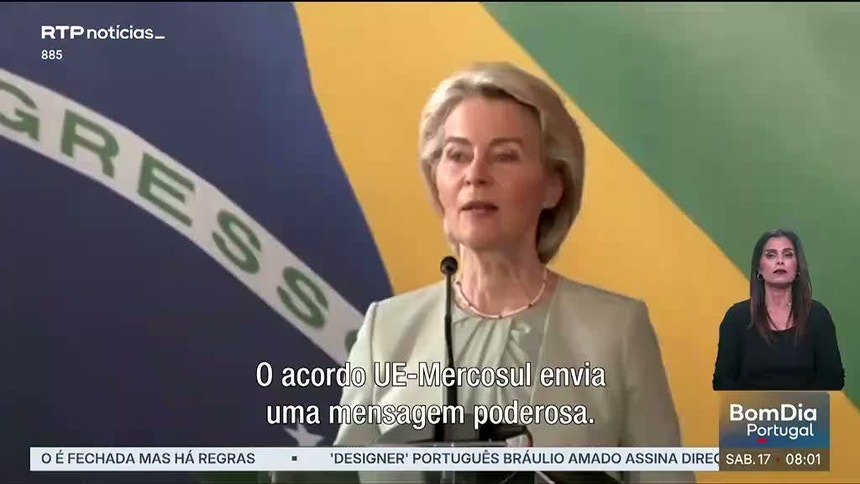 Quanto ao acordo, Ursula von der Leyen defendeu que este “multiplicará oportunidades como nunca antes”, através do “acesso mútuo a mercados estratégicos” com “regras claras e previsíveis”.