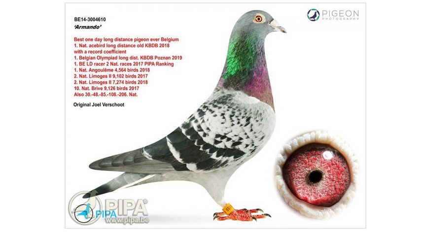 O pombo chama-se Armando, tem cinco anos, e se já era conhecido por ser o mais rápido nas provas de corridas de longa distância, tornou-se agora ainda mais conhecido por ter sido vendido por mais de um milhão de euros.
