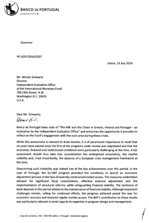 O Gabinete Independente de Avaliação do Fundo Monetário Internacional decidiu fazer uma auditoria independente à atuação da própria instituição durante o programa de ajustamento português. Os auditores concluíram que o exame aos bancos deveria ter sido independente do Banco de Portugal e que o programa falhou neste sector, apesar de sinais de fragilidade. Carlos Costa é alvo de duras críticas, mas o governador defendeu-se numa carta. Aponta "falta de rigor" e “graves erros factuais” à análise.