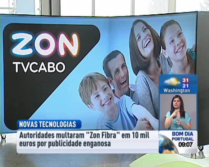 A ZON foi condenada a pagar 10 mil euros de multa por publicidade enganosa. A coima diz respeito ao arranque da ZON Fibra. Em causa a campanha "Mais de 1 milhão de casas ligadas à ZON Fibra", entretanto retirada do mercado. A decisão da Direção-Geral do Consumidor considerou que o consumidor foi induzido em erro por causa da utilização da palavra "fibra". É a resposta a uma queixa apresentada pelo grupo da Portugal Telecom. A ZON vai recorrer da decisão.