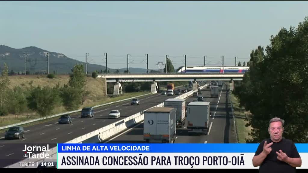 Está assinada a concessão para a construção do primeiro troço da linha de Alta Velocidade, entre Porto e Oiã. O Banco Europeu de Investimento entra com 875 milhões de euros que serão pagos ao longo de 25 anos.