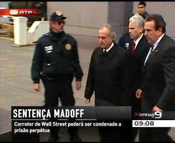 É hoje conhecida a sentença do caso Madoff, a maior fraude financeira da história. O corretor da bolsa de Nova Iorque declarou-se culpado de 11 crimes, entre eles burla e lavagem de dinheiro. Em causa estão mais de 46 mil milhões de euros, numa fraude que ficou conhecida como símbolo da ganancia de Wall Street. Bernard Madoff, de 71 anos, utilizava o dinheiro de novos investidores para pagar altas rentabilidades aos investidores mais antigos, num esquema em pirâmide, também conhecido como Ponzi.