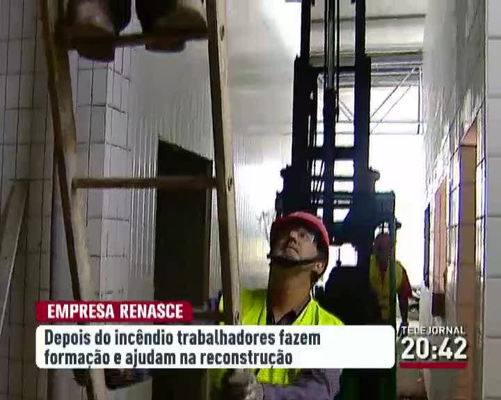 Um grupo de trabalhadores está a ajudar a reconstruir a sua fábrica. A fábrica da empresa Carmonti Carnes do Montijo foi destruída por um incêndio em Agosto, mas começou a ser reconstruída com a ajuda dos próprios trabalhadores.