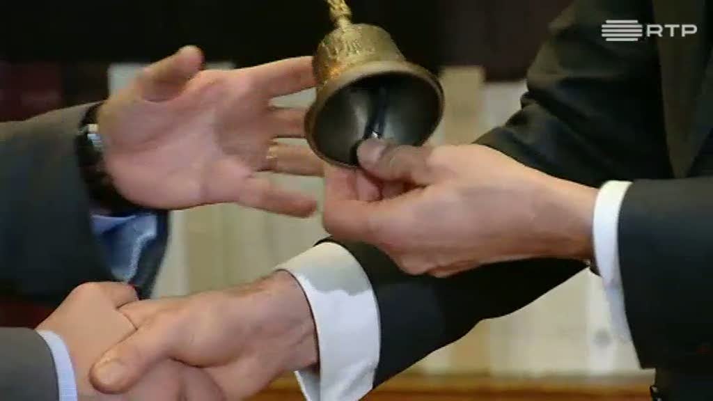 Mário Centeno tocou o sino pela primeira vez, agora que assume as funções de presidente do Eurogrupo, tornando-se o terceiro líder do fórum de ministros das Finanças da Zona Euro.