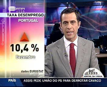 Segundo os dados do Eurostat, a taxa de desemprego em Portugal ascendeu aos 10,4 por cento em Dezembro de 2009. No mesmo período, o desemprego no conjunto dos 16 países da moeda única atingiu os dez por cento, contra 9,9 por cento em Novembro.