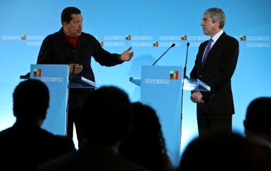 O Presidente da Venezuela chegou este domingo a Portugal com o propósito declarado de dar “as duas mãos” a José Sócrates “num momento difícil para Portugal”. À frente de uma delegação de nove ministros do seu Governo, Hugo Chávez veio também colocar a assinatura num conjunto de acordos comerciais que inclui a encomenda de navios aos Estaleiros de Viana do Castelo e a aquisição de milhão e meio de computadores “Magalhães”.