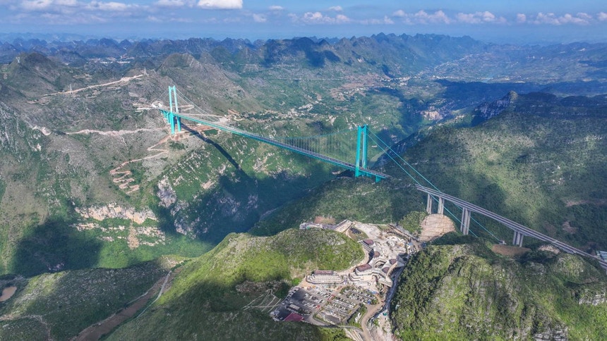 Após três anos de construção, a ponte sobre o Grande Desfiladeiro de Huajiang abrirá ao tráfego este domingo, reduzindo de duas horas para apenas alguns minutos o tempo necessário para atravessar o vale, conhecido como a "fenda do mundo" devido à sua profundidade.