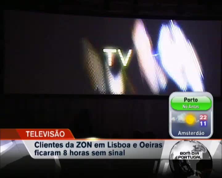Milhares de clientes da Zon ficaram cerca de 8 horas sem televisão. Tudo por causa de um corte na fibra óptica. A avaria atingiu a zona ocidental da Grande Lisboa, entre Alcântara e Oeiras e só foi resolvida por volta das 4 da madrugada.