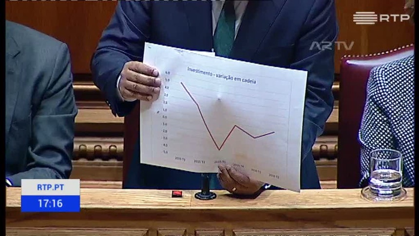 Quanto às exportações, traçou um cenário idêntico: em 2015 estavam de facto a baixar, mas em 2016 já começaram a subir. A mesma ideia deixada para o investimento. “É falso que não estejamos a crescer mais do que estávamos a crescer o ano passado, é falso que não estejamos a exportar mais do que exportávamos o ano passado, é falso que não haja mais investimento do que havia o ano passado e, sobretudo, é falso que não haja mais investimento estrangeiro do que aquele que havia no ano passado”.