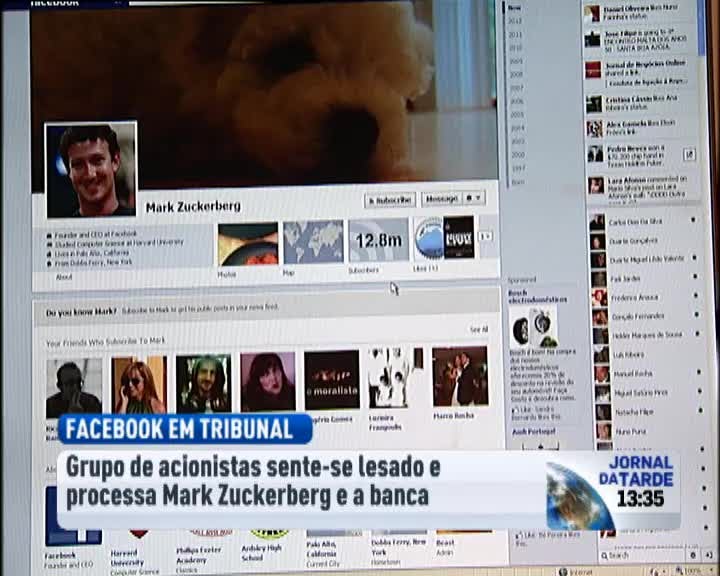 O fundador do Facebook vai ter de responder em tribunal por causa da entrada da empresa no mercado bolsista. Um grupo de acionistas acusa Mark Zuckerberg de ter escondido previsões que apontavam para um forte queda dos títulos. Ao lado do presidente executivo do Facebook vão estar os bancos responsáveis pela Oferta Pública inicial.