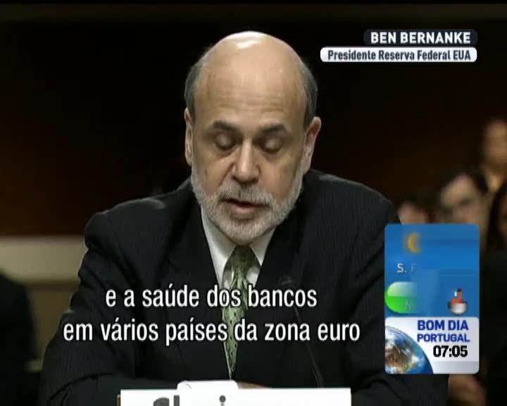 O presidente da Reserva Federal dos Estados Unidos diz que a crise na União Europeia é uma das principais ameaças à economia americana. Ben Bernanke acredita que vão ser necessárias mais medidas para enfrentar a crise das dívidas soberanas.