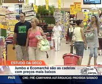 Um estudo da DECO concluiu que as cadeias de supermercados Jumbo e Ecomarché são as mais baratas em Portugal. O estudo analisou mais de 70 mil preços em 551 lojas. As regiões do Norte e do Centro do país continuam com os preços mais baixos.