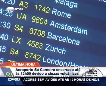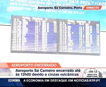 O aeroporto Francisco Sá Carneiro, no Porto, e todos os aeroportos no arquipélago dos Açores encontram-se encerrados ao tráfego aéreo até, pelo menos, ao final do dia de hoje. A decisão foi tomada pelas autoridades portuguesas devido a uma nova nuvem de cinzas emanada do vulcão islandês Eyjafjallajkull que chegou ao território nacional e que está a estender-se a toda a região norte e centro do país.