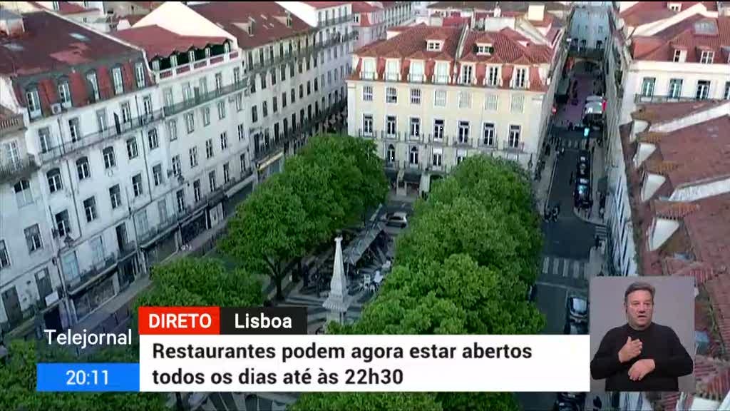 Regressaram os jantares nos restaurantes ao fim-de-semana. A RTP esteve em direto no centro de Lisboa, onde as esplanadas encheram.