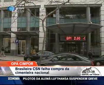 A Oferta Pública de Aquisição (OPA) que os brasileiros da Companhia Siderúrgica Nacional (CSN) sobre a Cimpor terminou hoje sem sucesso. A companhia brasileira apenas conseguiu 8,6 por cento do capital da cimenteira portuguesa, uma percentagem muito inferior àquela a que se proponha.