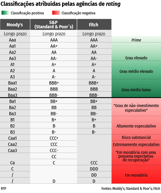 Portugal pediu o resgate de 78 mil milhões de euros ainda sob a chancela de ratings de investimento por parte das três grandes agências do setor, nomeadamente, S&P, Fitch e Moody’s.