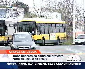 Os Transportes de Lisboa estão hoje em greve... Os trabalhadores da Carris paralizaram esta manhã e os trabalhadores da Transportes Sul do Tejo estão e vão continuar em greve até às 3 da manhã de sábado. No que respeita à Carris, o Sindicato dos Trabalhadores dos Transportes Rodoviários fala de cerca de 50 por cento de adesão a Carris afirma que fizeram greve apenas 8 por cento dos colaboradores.