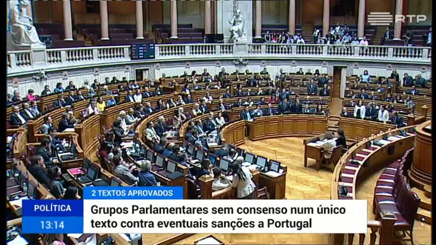 Acabam de ser aprovados pelo parlamento dois textos de condenação da aplicação de eventuais sanções a Portugal por parte da Comissão Europeia.