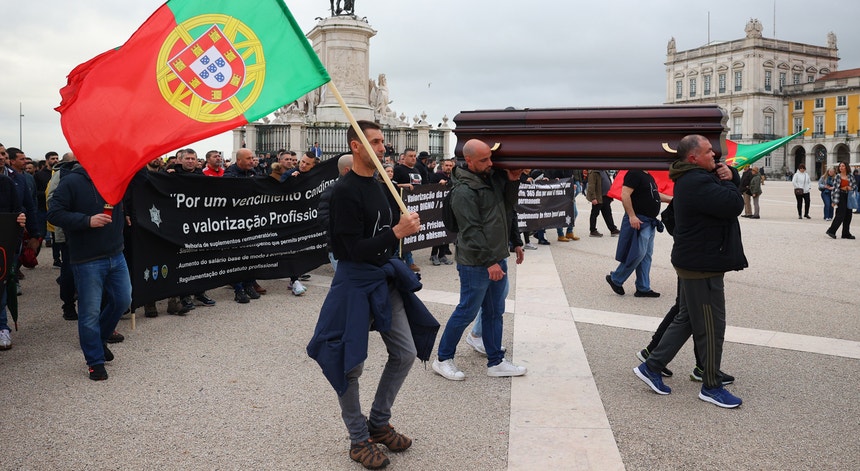 Os guardas prisionais e técnicos de reinserção estão em greve por 24 horas. Dizem-se esquecidos e protestam contra a desvalorização da carreira sem progressão há mais de 15 anos. Num ato simbólico, deixaram um caixão em frente à Direção-Geral de Reinserção e Serviços Prisionais.