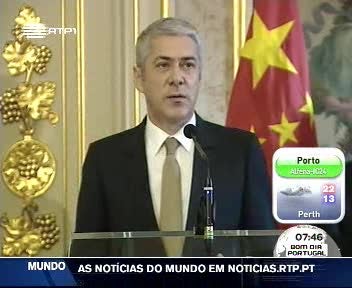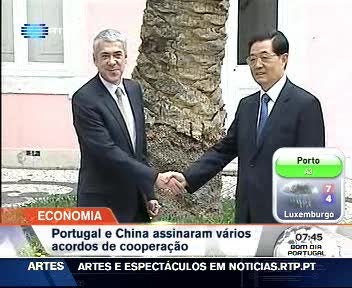 "Hu Jintao e o Primeiro-ministro português, José Sócrates, presidiram à assinatura de acordos e contratos sobre projectos de infra-estruturas, energias renováveis e turismo no valor de mil milhões de dólares", escreve esta manhã o jornal China Daily numa alusão à visita do Presidente chinês ao nosso país.