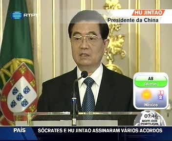 Recorde-se que Hu Jintao foi o primeiro presidente chinês recebido em Lisboa, em mais de uma década, tendo mantido contactos com Cavaco Silva, José Sócrates e ainda Jaime Gama, presidente da Assembleia da República.