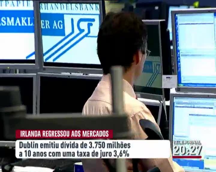 A Irlanda regressou com sucesso aos mercados após concluir o programa da troika. O tesouro irlandês obteve um financiamento de 3 mil 750 milhões de euros e pagou uma taxa média de 3,6 por cento. Durante a operação os juros chegram a caír para o nível mais baixo desde há oito anos. A procura por parte dos investidores foi cerca de três vezes superior à oferta e terá rondado os 14 mil milhões de euros. O sucesso desta emissão da divida irlandesa teve também efeitos positivos nos juros da dívida portuguesa. No prazo a dez anos recuaram para cerca de 5,4 por cento o valor mais baixo desde Maio de 2013.