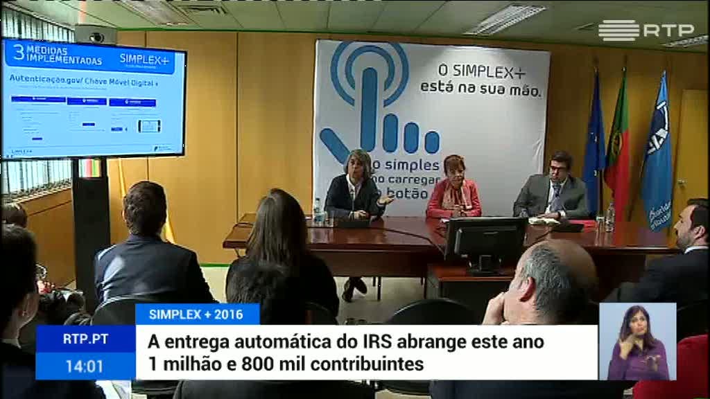 Este ano, a entrega automática do IRS abrange já um milhão e 800 mil contribuintes. É uma das medidas mais emblemáticas do programa Simplex + 2016. Das 255 anunciadas pelo Governo, 54 estão a ser já aplicadas.
